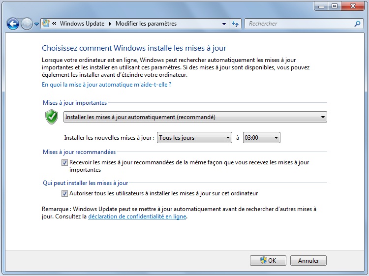 La même chose pour le système d’exploitation, il faut bien garder votre OS à jour, et d’activer l’option «installer les mises à jour automatiquement»