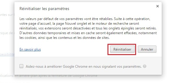 Le meilleur procédé sera alors de réinitialiser complètement votre navigateur web.