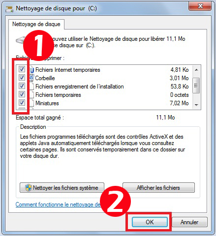 Cochez les fichiers à supprimer, puis cliquez sur « OK »